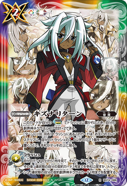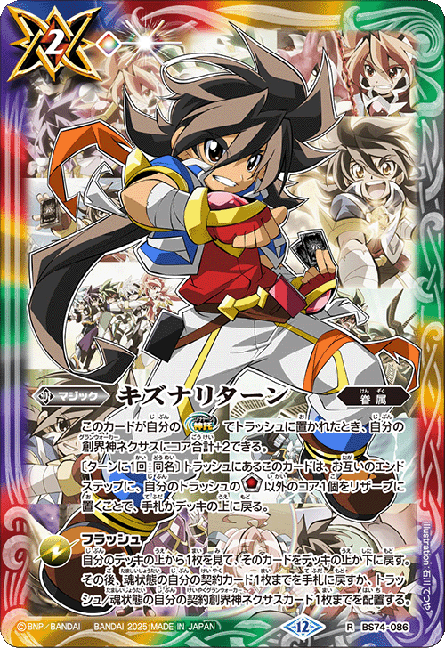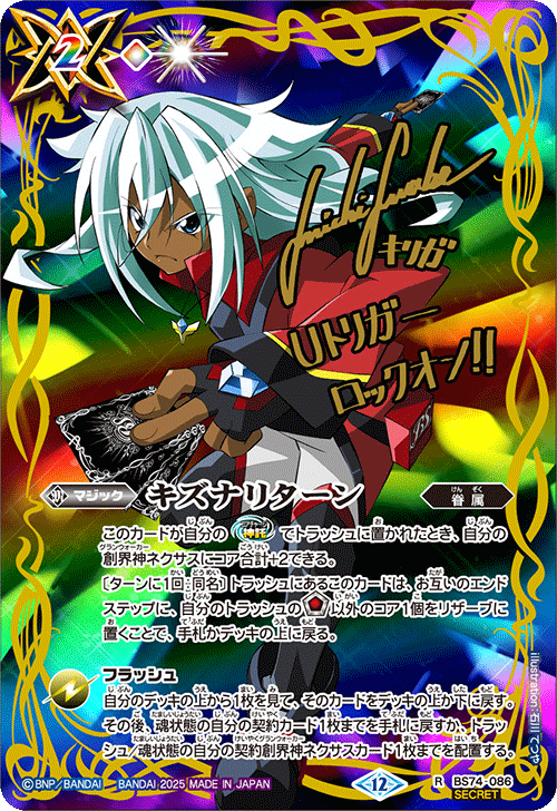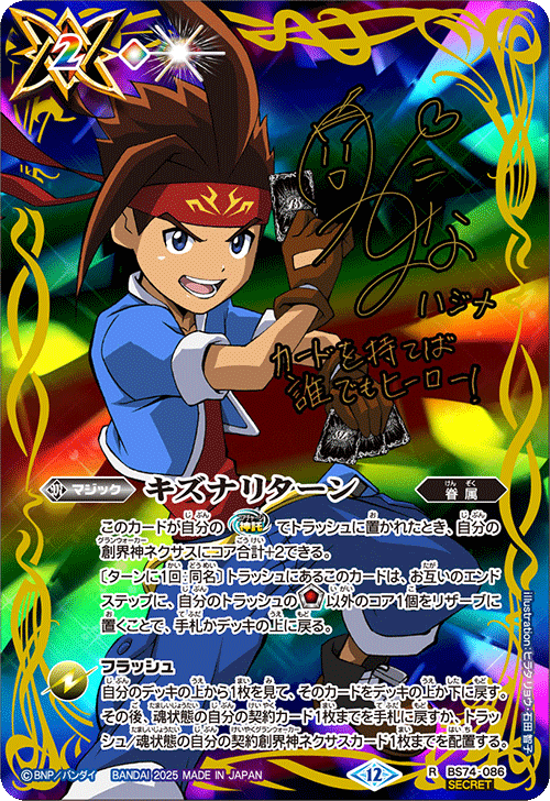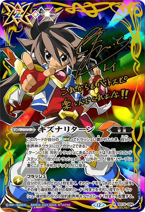 『覇極来臨』的「全明星簽名卡獲取活動!」將推出以『Battle Spirits 覇王』、『最強銀河 究極ZERO Battle Spirits』、『Battle Spirits烈火魂<Burning Soul>』角色設計的新魔法卡「キズナリターン」。設計共6種,請收集喜愛角色的「キズナリターン」吧!