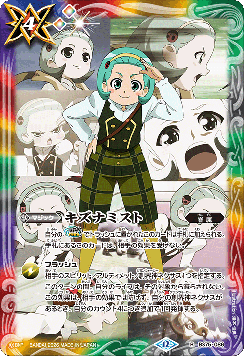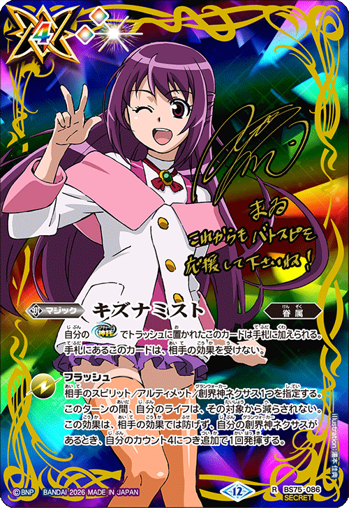 自2月以來,我們已開始陸續公開『入門牌組』與『補充包 創世の鼓動』的卡牌。雖然目前公開的還僅是一部分卡牌,但其中收錄了擁有【地鳴】、【増幅】等過去未曾出現的效果的靈魂卡,相信各位能從插畫等各方面感受到Battle Spirits煥然一新。正如我們一直以來所傳達的,『Battle Spirits真界放企劃』的目的,在於讓更多的人能夠更長久地享受Battle Spirits。另一方面,在『創世の鼓動』中也收錄了像【激突】這類擁有既有效果的卡牌。我們的想法並非將所有效果煥然一新,而是期望透過新穎感與懷舊感的融合,來形塑出「Standard」版的Battle Spirits。未來我們也會視情況,持續讓這類既有效果有復活的可能,敬請期待。