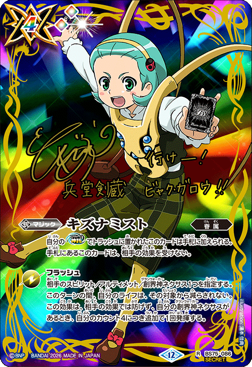 『英雄傑集』的「全明星簽名卡獲取活動!」中,將會登場以『Battle Spirits 少年激覇ダン』、『Battle Spirits Brave』、『Battle Spirits サーガブレイヴ』角色設計的新規魔法卡「キズナミスト」。設計共有6種,請試著收集您喜愛角色的「キズナミスト」。