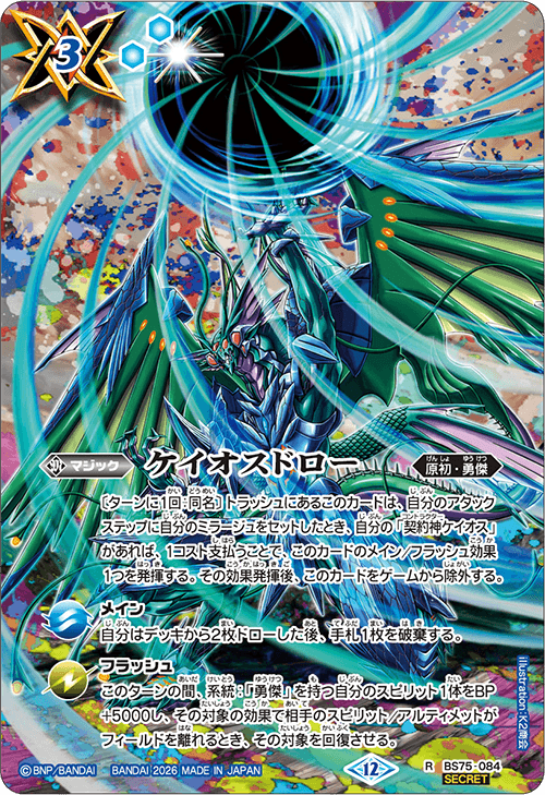 『契約編:環 第4章 英雄傑集』中,收錄全新魔法卡「BS75-086 キズナミスト」,共有全6種歷代Battle Spirits動畫角色設計!